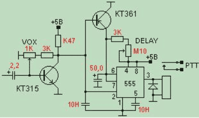 Предлагаю простую схему VOXa, и не только для этого трансивера. Схема