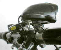Цвет корпуса можно было оставить родной, светло-серый, но для общей гармонии с остальной навеской велосипеда не грех и черной "нитрой" пройтись из баллончика (аккуратно! Нитрокраска очень активно растворяет серую "компьютерную" пластмассу). Батарейки размещаются в сумке для инструментов (она у меня большая). Сначала заложил батарейки в контейнер (корпус от старого фонарика). Покатался - плохие контакты, гаснет периодически, трясти надо. Спаял три батарейки последовательно проводками, обмотал скотчем - так проще и надежнее. Вот, пожалуй, и все. Конструкция очень простая, и по-моему, понятная. На рисунках:
