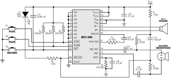 Кроме обвязки цифрового магнитофона на микросхеме ISD1420 (конденсаторы, резисторы и др.)