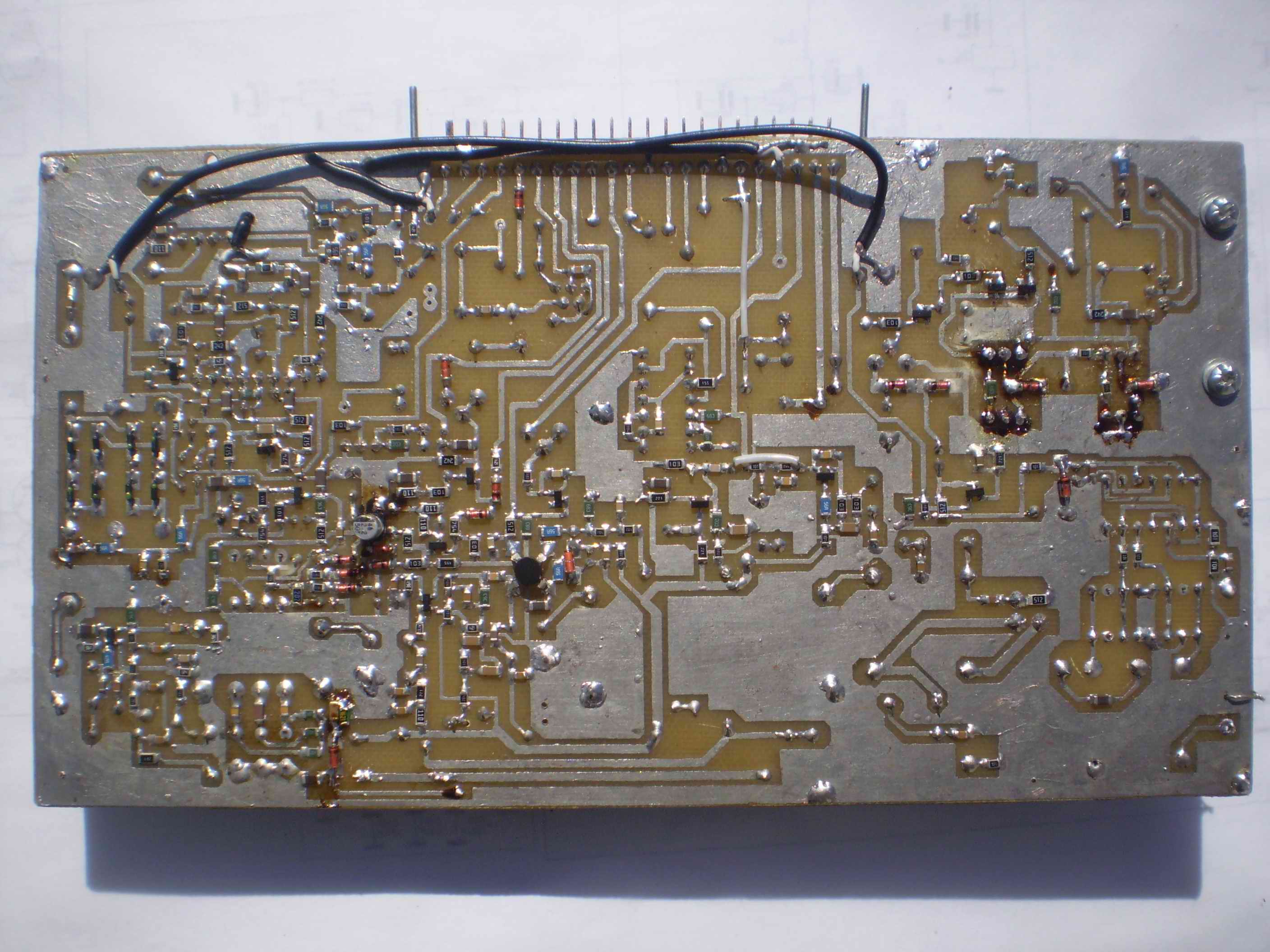 Рис. 2. Схема модема Настройка платы особенностей не имеет, настройка узлов и каскадов аналогична методике, которая изложена в описании выше перечисленных конструкций. Детали платы все в основном бескорпусные, кроме кварцев, катушек индуктивности, электролитических конденсаторов, отечественных транзисторов (кроме КТ3130 и КТ3129), микросхем, стабилитронов и ВЧ-трансформаторов. Плата изготовлена с применением SMD элементов (в основном резисторы и конденсаторы), размер платы 198х110, плата двухсторонняя с металлизацией отверстий. Если кого-то заинтересует печатная плата с применением стандартных элементов, с удовольствием займусь разводкой таковой. Всем кого заинтересовала данная схема, или возникли вопросы, с удовольствием отвечу по почте: ur4qbp (at) mail.ru, правда «Интернет» только когда я на работе, поэтому оперативное реагирование на письма не гарантирую. Также меня можно услышать на 80-ке по вечерам.