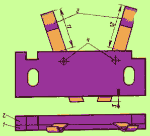В устройстве применены резисторы СП-1-А-0.5 (R6). СПЗ-16 (R3, R8, R9, R23, R24) и ВС (остальные). Кнопка SB1 - П2К без фиксации в нажатом положении. Микроамперметр - любой с током полного отклонения 50... 100 мкА, например, от авометра Ц437. Катушки L7 и L8 намотаны на полистироловом каркасе (от селектора СК-В-1) диаметром 5 и длиной 17 мм с латунным подстроечником и содержат по 20 витков провода ПЭВ-1 0,2. Расстояние между катушками - 2 мм, намотка - виток к витку. Детали прибора смонтированы на вертикальном дюралюминиевом шасси размерами 197Х98Х2 мм, служащем лицевой панелью. Кожух прибора изготовлен из пластичного алюминиевого сплава толщиной 1 мм. Корпус селектора каналов, лицевая панель и кожух прибора электрически соединены между собой. Переключатель SA1 закреплен на хвостовой части оси селектора каналов. Его подвижной платой служит диск от переключателя селектора каналов СК-М-20, с которого удалены катушки, а между контактами припаяны резисторы R 11 - R22 делителя, обеспечивающего напряжение корректировки усиления селектора каналов и усилителя ПЧ. Выступ в центральном отверстии диска удален надфилем, а само отверстие рассверлено до диаметра 5 мм (см. рис.3,а, металлические контакты на диске заштрихованы условно) .