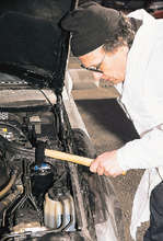 Чтобы отключить сирену, возьмем в руки молоток. Алгоритм угона выглядит следующим образом. Машиной занимаются два специалиста (в дальнейшем – ”первый” и ”второй”). Специальной титановой ”сверткой” проворачивают замок водительской двери: он приносится в жертву. ”Первый” проникает в салон, дергает рукоятку привода капота и парой сильных ударов выбивает замок зажигания из рулевой колонки. Всевозможные механические замки перекусываются ”гидравликой”. ”Второй” пытается открыть капот.