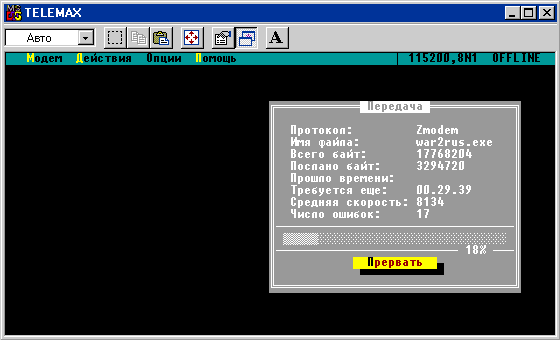 Не важно какие разъемы использовать: 9 и 25, 9 и 9 или 25 и 25 контактные, главное указать в программе Telemax из набора программ Norton, что нужно использовать такой-то порт. Если компьютер был включен, то нужно перезагрузиться после соединения. Я долго не мог найти в интернете Norton Commander - попадались только нерабочие ссылки. Поэтому выложу для скачивания оболочку Norton с программой Telemax, она нам и понадобиться. Вид ее оболочки я привел выше. Для удобства скачивания и переноса на дискете я изрядно почистил папку, оставив, собственно Norton Commander и Telemax. Настройки по умолчанию можно не изменять, но обязательно нужно проверить порт куда подключен провод. Могу сказать больше - если нет связи и не кривые руки - неверно указан порт. После изменения порта нужно сохранить установки, чтобы они были при следующей загрузке программы. Для проверки запускаете на двух машинах Telemax и с одной отправляете файл по ZModem. На другой автоматически открывается окно загрузки. По окончании загрузки прозвучит звуковой сигнал. Дополнительная информация: Безсмертный В.С. |