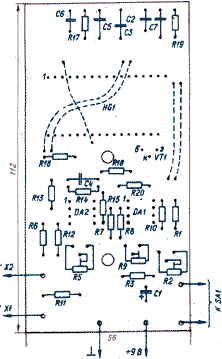 смонтирована со стороны печатных проводников. Гнезда XI, Х2 (от разъема 2РМ)