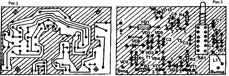 [ Увеличить в новом окне ] На рис.2 и 3 приведены печатная плата и расположение деталей на плате.