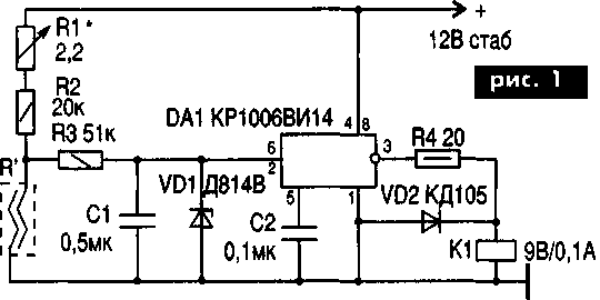 необходимо включить на вход схемы рис.2 датчик температуры - терморезистор, диод