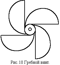 Для каждого конкретного сочетания судна и двигателя существует оптимальный гребной винт. Теория гребного винта обширна и здесь не рассматривается. Правильно подобранный винт - это 90 % успеха в ходовых характеристиках катера. Поэтому макет винта надо делать из жести, и по результатам испытаний корректировать его форму. Окончательно винт изготовлен из листа нержавеющей стали толщиной 0,5 мм. Я остановился на четырех лопастном винте диаметром 50 мм. На рисунке 10 показана приблизительная форма винта (вид с кормы).