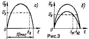 Для аппаратов, работающих на малых значениях сварочного тока, необходимо обеспечить крутопадающую характеристику. Этого достигают выбором числа витков вторичной обмотки. На рис. 3.б показано, как можно изменять крутизну характеристики при одном и том же напряжении зажигания дуги. Таким образом, в аппарате с управлением углом отсечки вторичного напряжения есть все условия для образования электрической дуги и возможность регулирования мощности.