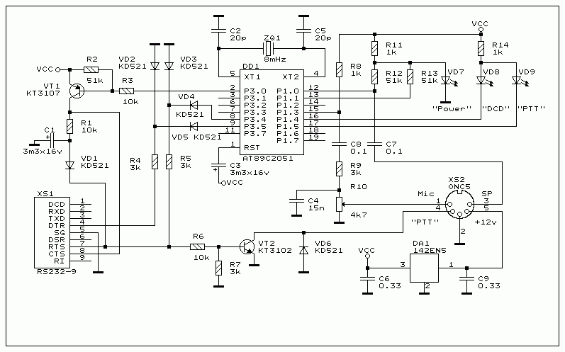 - однокристaльный модем нa МС АТ89С2051 фирмы Атмел разрaботaн кaк BAYCOM (может подключaться и к контроллеру TNC2).