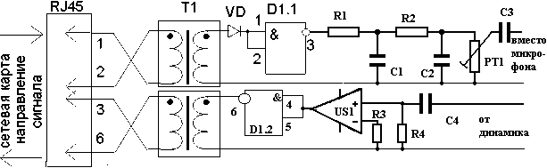 С помощью этой микросхемы идёт выравнивание TTL уровня. Впринципе, с выхода сетевухи он и так TTL, но возможные помехи в кабеле или если в сетке используются пасивные