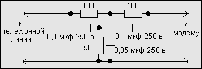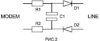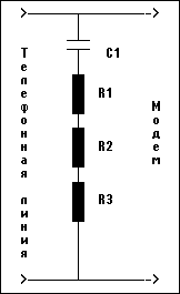 R1 и R2 - штатные pезистоpы и C емкость модема