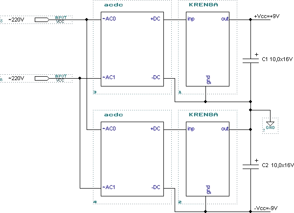 Для описанной выше схемы, вам, также, потребуется блок питания. Вот схема такого блока: