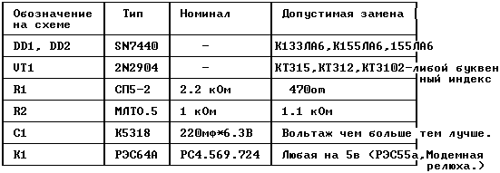 В настоящее время получили широкое распространение автоматические определители номера (АОН), собранные на различной элементной базе (КР580ВМ80А, Z80, 1816BE49, комплекты жесткой логики К155, К564 и др.). Все эти системы ориентированы на определение номера вызывающего абонента по информации, высылаемой станцией в ответ на запрос частотой 500Гц - 2.5кГц в двутональном коде "2 из 6" кодирующими частотами 700, 900, 1100, 1300, 1500 и 1700 Гц с отклонениями сигналов не более 15 Гц и длитель- ностью не более 32 мс. Устройство, описание которого приводится ниже, позволяет "ослепить" подобную систему определения номера.