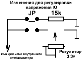 - Поставить джампер отвечающий за напряжение IO в положение когда он будет подключен к вновь впаянному резистору.