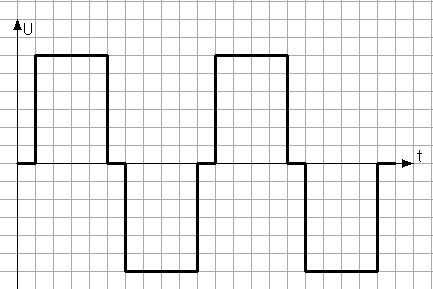 Открытыми эти транзисторы будут оставаться до тех пор, пока счетчик не досчитает до 5, тогда опять все транзисторы закроются. После 6-го импульса лог.1 появится на выходе 6 DD2 (вывод 5), легко видеть, что это приведет к отпиранию VT2 и VT4. После 10-го импульса транзисторы опять закроются. Так в преобразователе каждые пол-периода формируется пауза длительностью 0.1 периода, благодаря чему полностью исключено протекание сквозного тока через силовые транзисторы. В результате на вторичной обмотке трансформатора формируется напряжение такой формы, как показано на рисунке 2. Если хотите его увидеть на экране осциллографа, обязательно подключите его параллельно нагрузке, а не на холостом ходу.