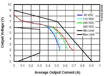 Обратноходовой преобразователь на базе микросхем LinkSwitch-LP обладают Вольт-амперной характеристикой (ВАХ) похожей на ВАХ обычного линейного источника питания, с той лишь разницей, что выходной ток лимитирован на максимальной выходной мощности.