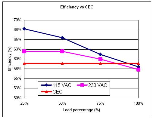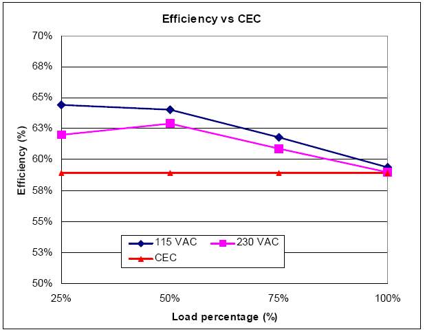 Примечание: по требованиям СЕС минимальный КПД должен составлять 58,9%. При этом замеры показали: