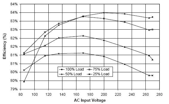 По требованиям СЕС (California Energy Commission) для того, чтобы источник питания имел право изготавливаться продаваться на территории США после 1го июля 2006 года, он должен удовлетворять соответствующим требованиям по среднему КПД (он вычисляется как среднее арифмитическое между 4мя замерами КПД при 25%,50%,75%,100% потребляемой мощности):