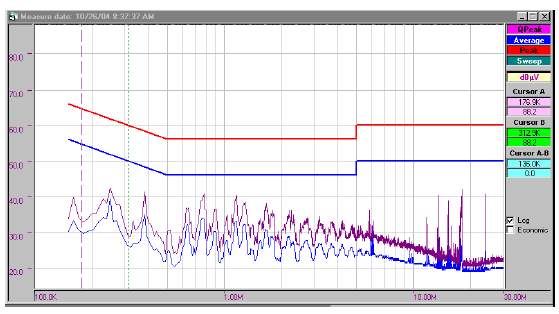 6. Уровень наведенных ЭМИ (максимальная нагрузка, 230VAC, 50Hz, пределы - EN55022B).