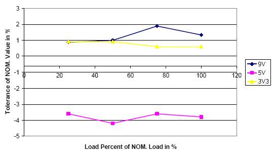 2. Нестабильность выходного напряжения от нагрузки (отклонение от номинала, %).