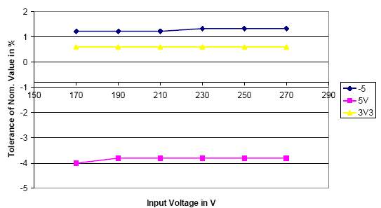 3. Нестабильность выходного напряжения от входного напряжения (отклонение от номинала, %).