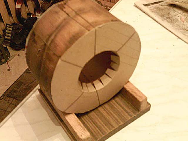 Самые опасные места для пробоя это углы окружностей ТОРА внешний и особенно внутренний. Поэтому если во время намотки мы увидим, что провод может соприкасаться с проводом внутреннего слоя, особенно по внутреннему углу окружности ТОРА. То необходимо подложить под провод полоски такого же картона шириной 10мм. и длинной по 20-30мм., там, где это необходимо. На внешней стороне, как правила этого делать не приходится, так как внешняя сторона заготовки наслаивается на край и хорошо предохраняет провод от замыкания.
