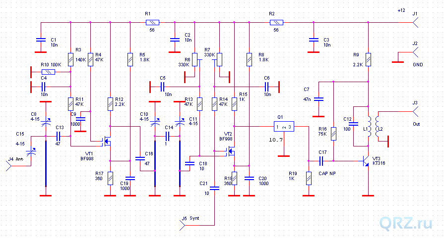 Схема входной платы УКВ радиостанции на транзисторах BF998
