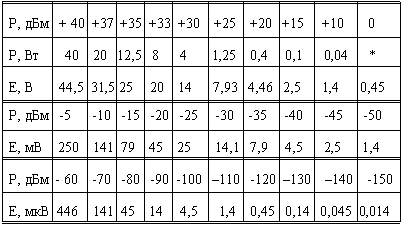 антенну носимой станции. Таблица 1.