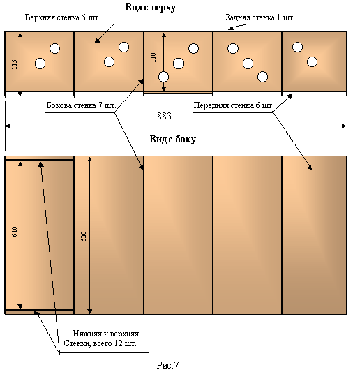 Порядок сборки корпуса. ВЕРХНИЕ СТЕНКИ6 отв.для крепления вращаемой шайбы петли связи. 3 отв.через 120 градусов.