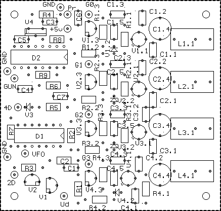 не устанавливаются элементы С1.4 , С2.4 , С3.4 , С4.4 , L1.1 , L2.1 ,