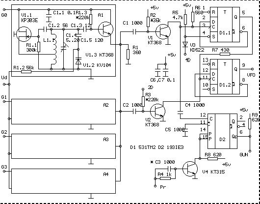 уверенное переключение триггеров D1 на всех диапазонах . Конденсатор С3