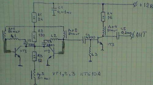 В общем схема хорошо глушит приемники со сканированием и радиостанции
