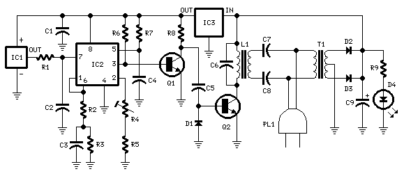 трансформатор на L1 и C7, C8.