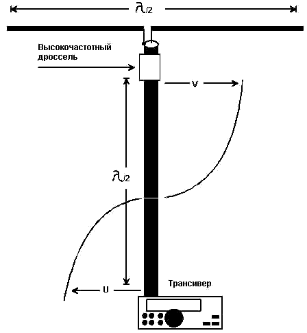 - когда электрическая длина паразитной антенны, образованной внешней стороной оплетки коаксиального кабеля и подключенных к нему устройств, будет кратна половине длины волны работы передающей антенны, как это показано на рис. 13а;
