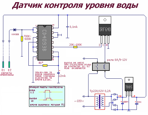 Схема контроля уровня воды