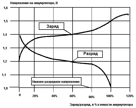 Рисунок 3 Разрядная и зарядная характеристика никель/кадмиевого