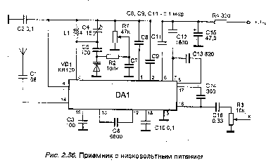 напряжением 9 В. Принципиальная схема приемника представлена на рис.2.52.