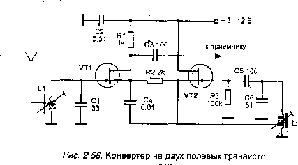 УКВ конвертер на двух полевых транзисторах